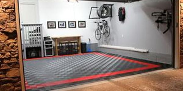 "An old garage floor with cracks and stains was the problem and RaceDeck from Full Court Athletics was our solution and it looks great! We went with both the diamond pattern and the freeflow using graphite and alloy in a checkerboard pattern and could not be happier with the outcome. Full Court Athletics shared samples with us, helped in measuring our space and even offered to consult us on our DIY install, shipping WOW it all arrived less than a week later! Installation took less than a day and now we have no more cracks or stains. The garage is now officially an extension of our home, practical, easy install, and warmer than concrete. Thanks RaceDeck of Montana!"